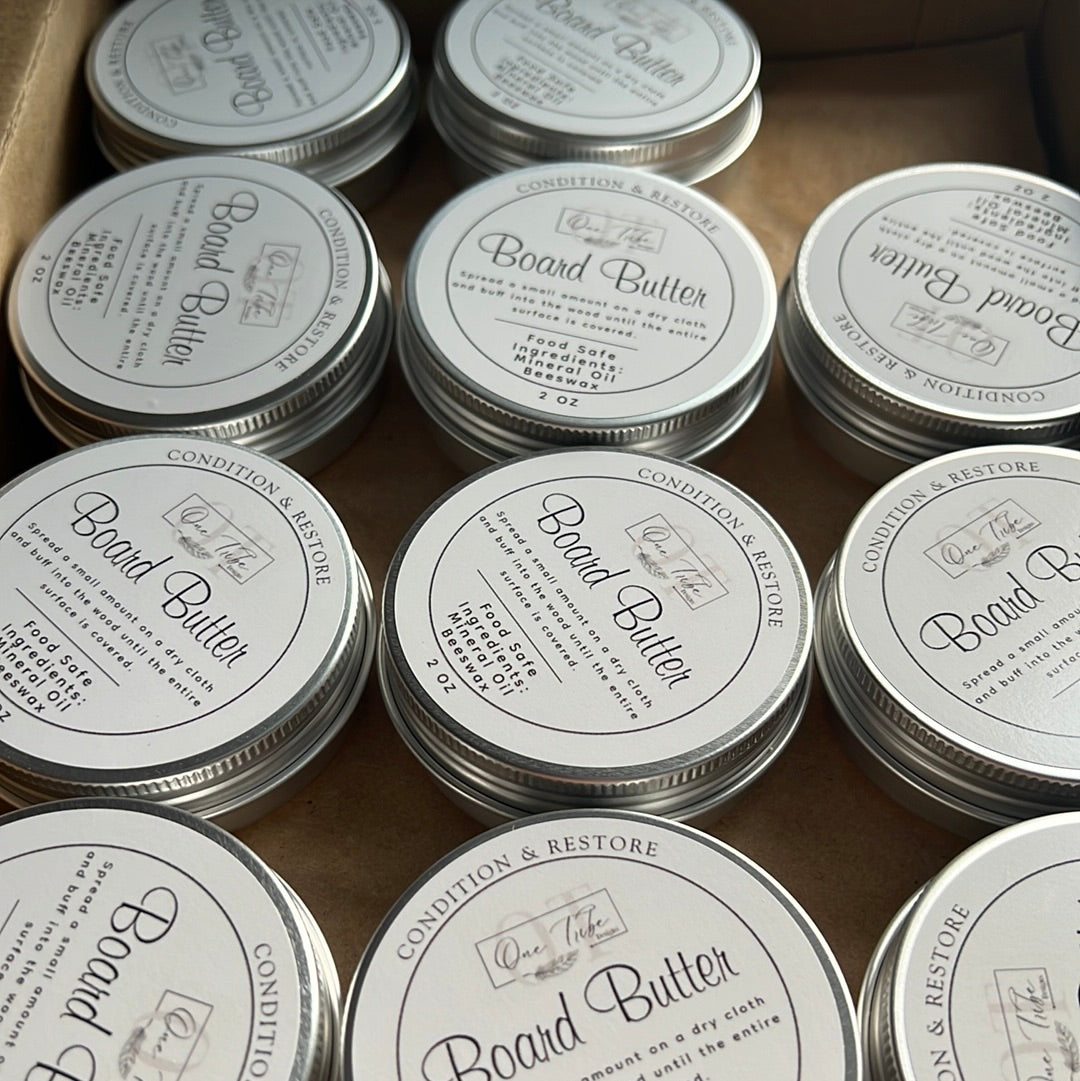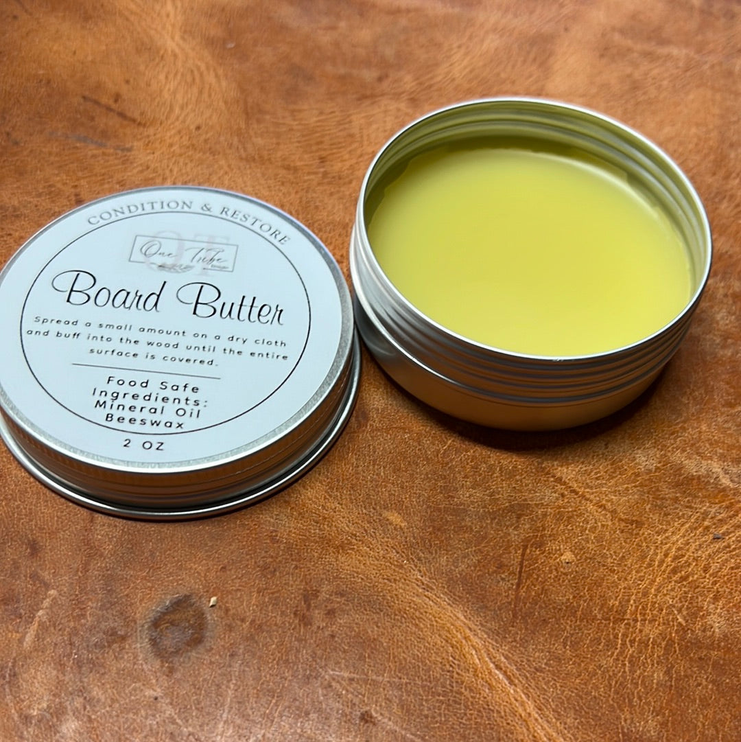 Condition and Restore your wood cutting boards with our in-house made board butter. This product is 100% food safe! Apply a small amount (goes a long way) with a soft cloth working into all areas of the wood. Wait 5 minutes and wipe any excess off.