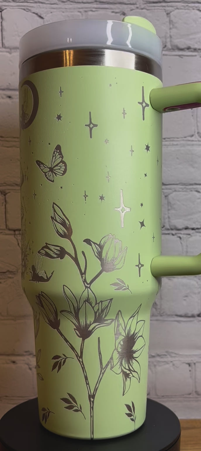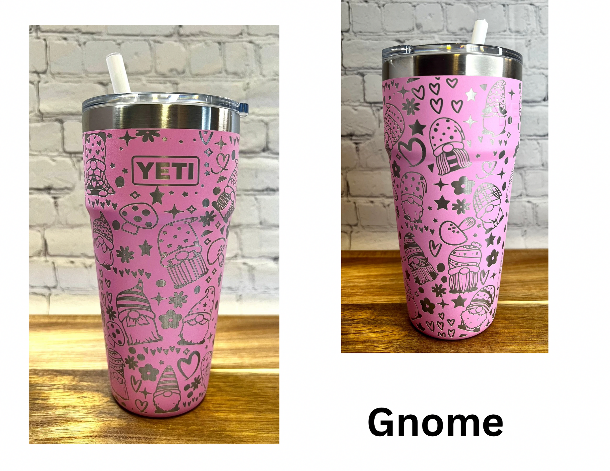 Add a tumbler to your cart along with a design (options above) and we will engrave the tumbler with that design before shipping to you. Since we sell tumblers of all types of brands the design may vary from the pictures shown.