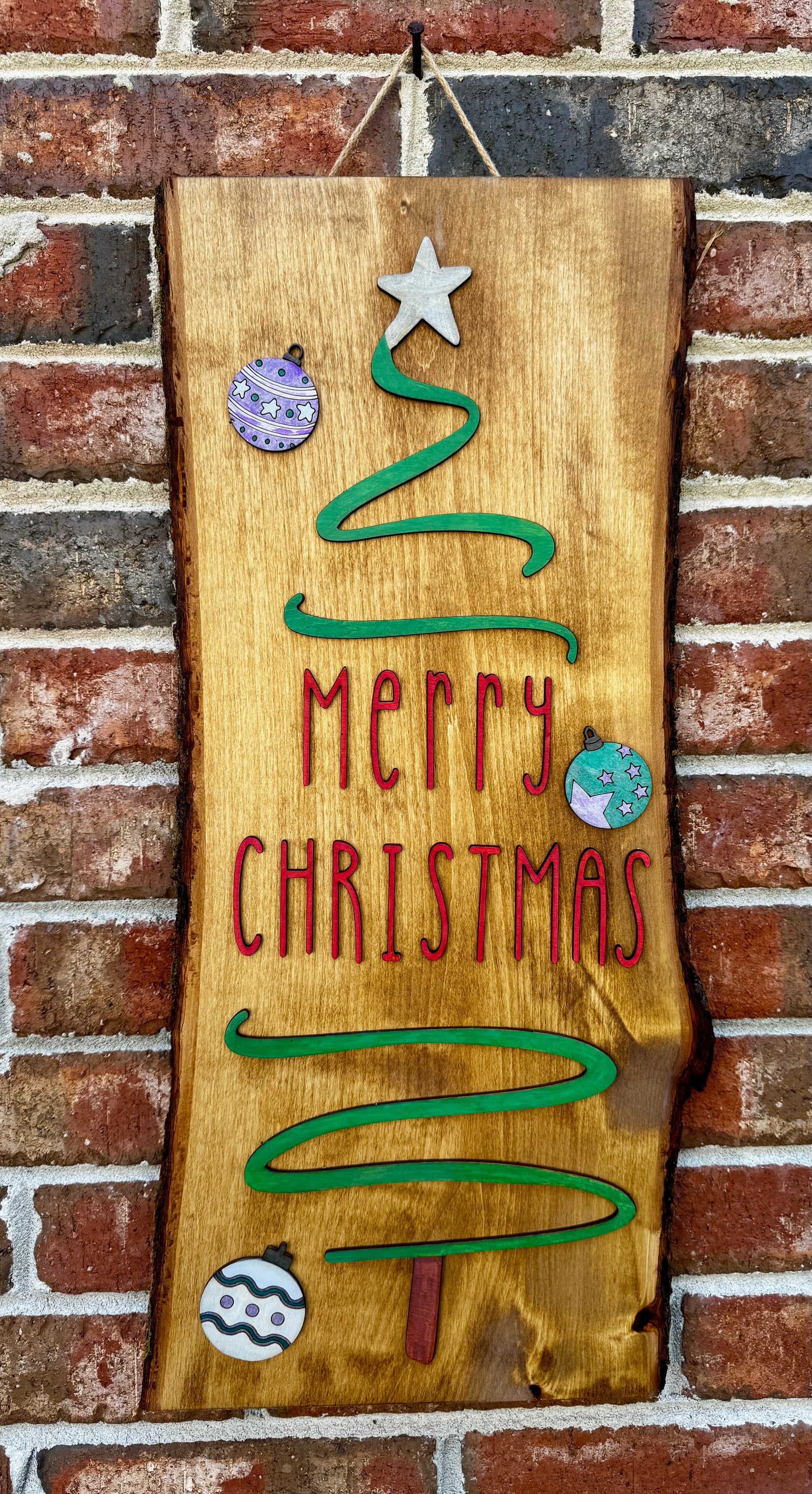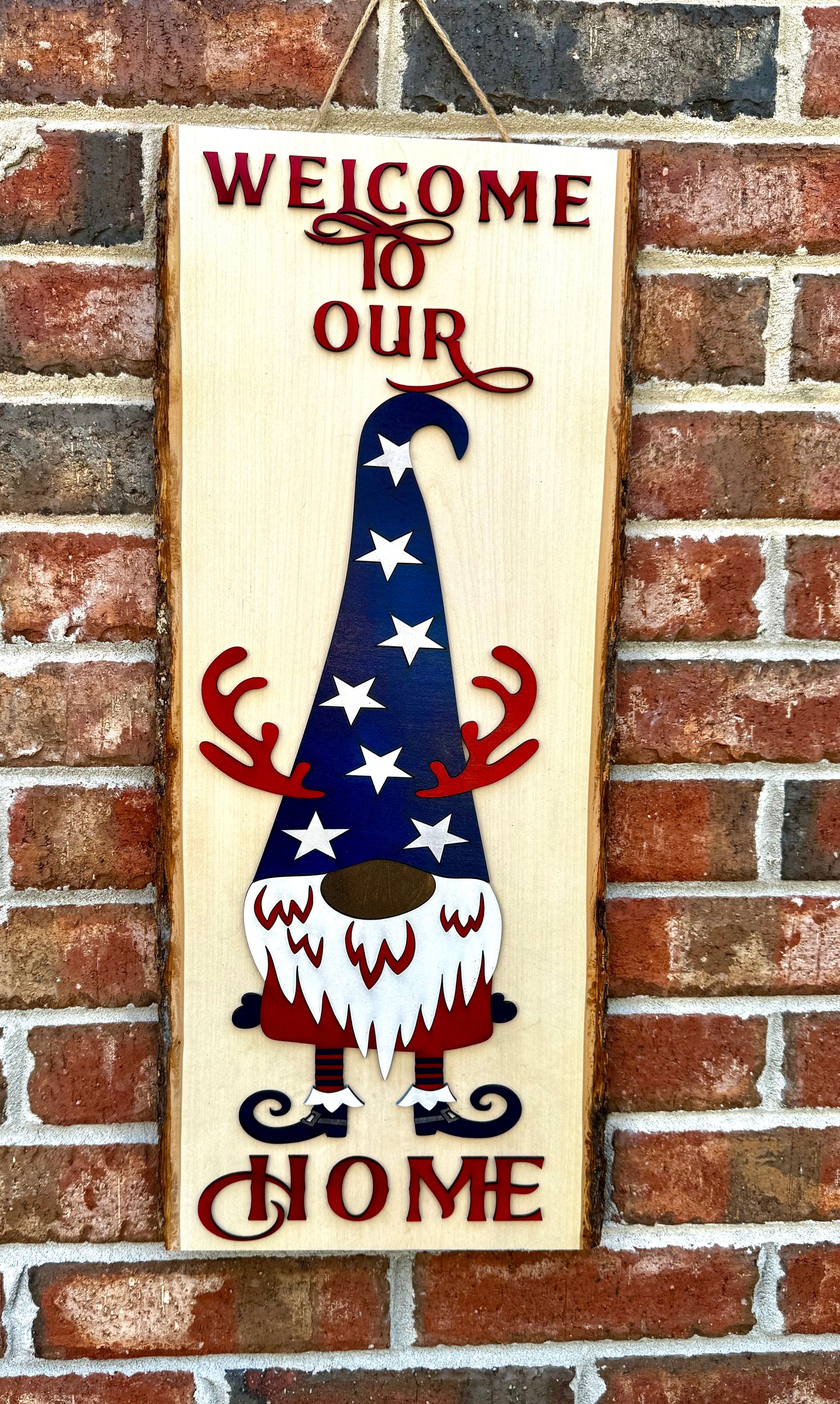 Live wood edge welcome sign measures approximately 23”x 10”. Fully sealed for outdoor use.